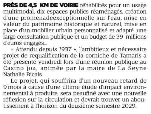 De son côté, la Métropole précise que, « concernant le projet de la corniche, une étude environnementale sera déposée en avril 2026.