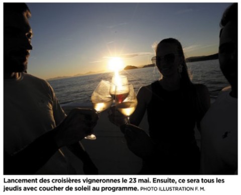 CE SONT DES moments de découverte gourmands et envoûtants qui vous attendent jusqu'à fin septembre au départ du port de Toulon. Dès le vendredi 23 mai prochain, jour de la croisière inaugurale, les croisières vigneronnes organisées par l'office de tourisme Provence Méditerranée font leur retour dans la rade. Elles seront ensuite proposées tous les jeudis du 29 mai au 25 septembre, à chaque fois en début de soirée (départ généralement prévu à 18 h 30 ou 19 h).