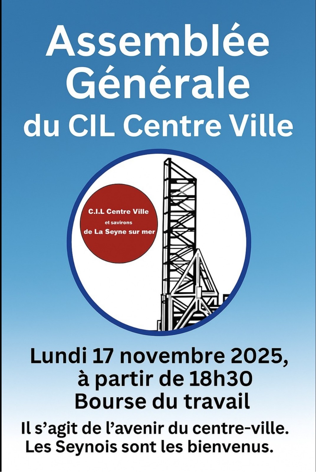 L'Assemblée Générale du CIL de Balaguier - Le Manteau - L'Eguillette se tiendra le samedi 6 décembre 2025 à la Batterie Bonaparte à La Seyne sur mer à partir de 9h30.