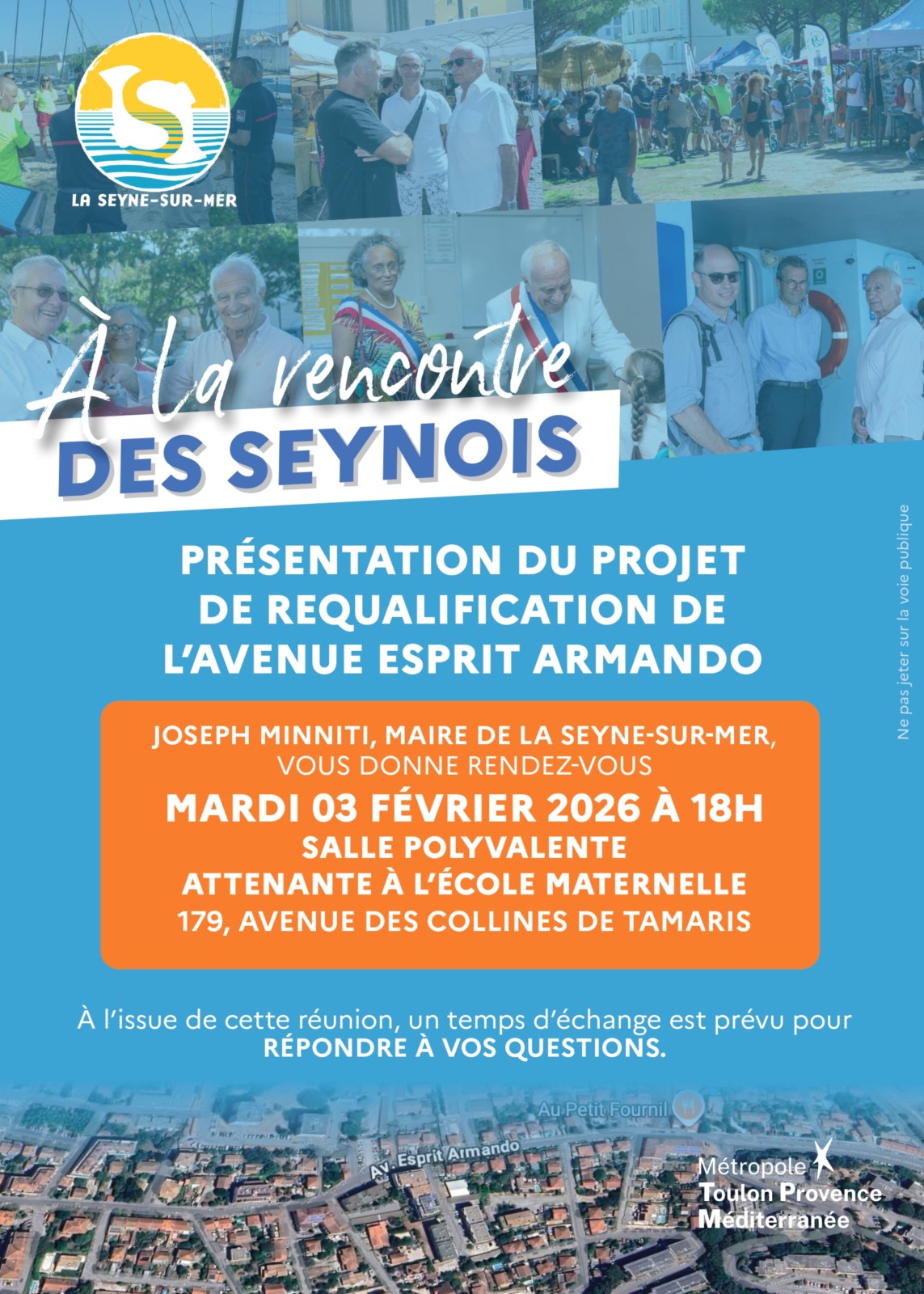 Pour I’heure, face aux critiques sur le sens unique, la maire de La Seyne a indiqué qu'avant le démarrage de l'enquête publique sur le projet global (a priori juin - juillet 2026), une étude de circulation complémentaire allait être lancée avec une réflexion portant sur une inversion du futur sens unique entre l'espace Grimaud et le port du Manteau.